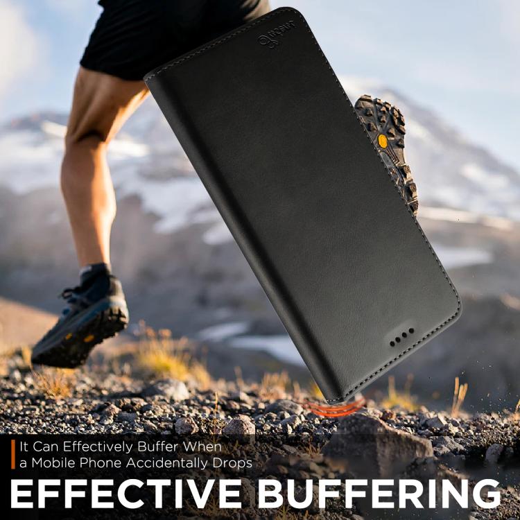 For iPhone 17 Pro Max Suteni Calf Texture Horizontal Flip Leather Phone Case(Black)