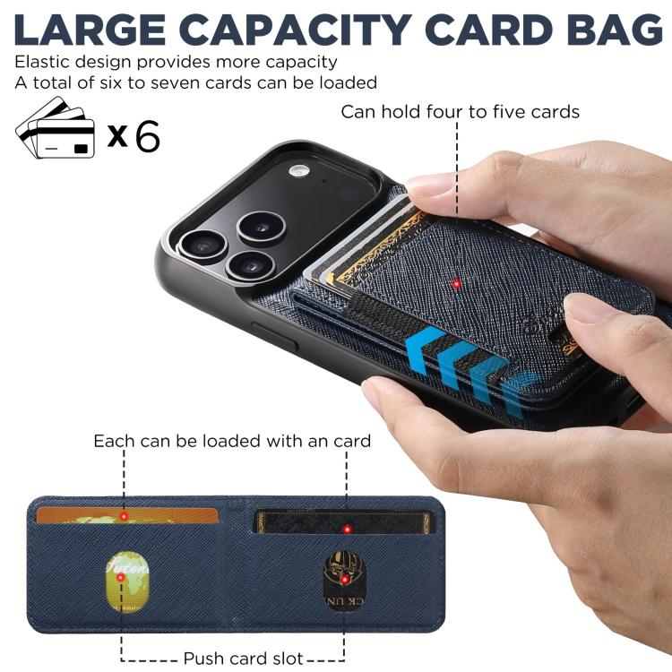 For iPhone 17 Pro Suteni H17 Cross Grain Leather MagSafe Detachable Wallet Phone Case(Blue)