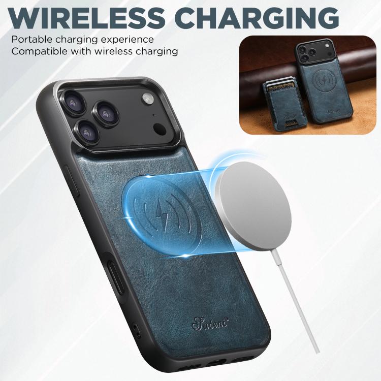 For iPhone 17 Pro Suteni H17 Oil Eax Leather MagSafe Detachable Wallet Phone Case(Blue)