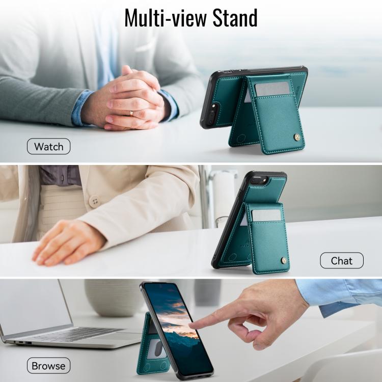 For iPhone 8 Plus / 7 Plus JEEHOOD J06 British Style RFID MagSafe Card Bag PU Phone Case(Green)