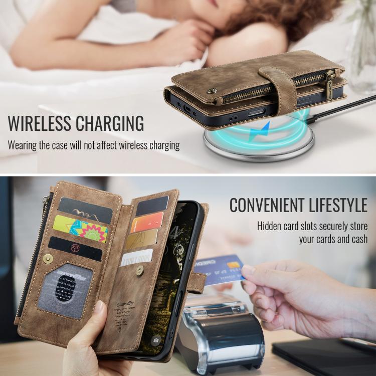 For iPhone Air CaseMe C30 Card Slots Zipper Wallet Leather Phone Case(Brown)