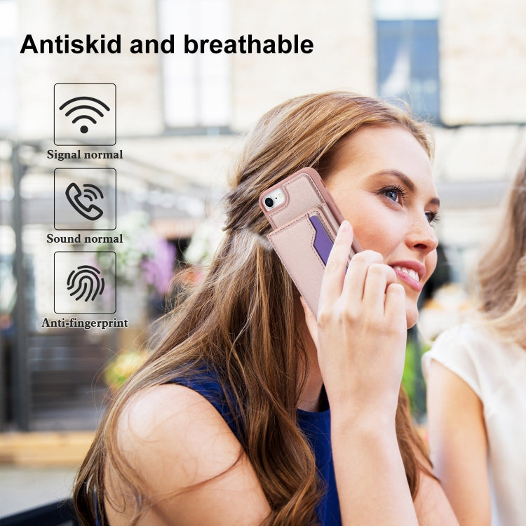 For iPhone SE 2022 / 2020 / 8 / 7 RFID Anti-theft Detachable Card Bag Leather Phone Case(Pink)