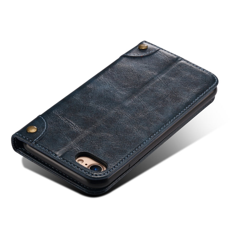 For iPhone SE 2022 / SE 2020 / 8 / 7 Baroque Simple Horizontal Flip Leather Case with Holder & Card Slots & Wallet(Blue)