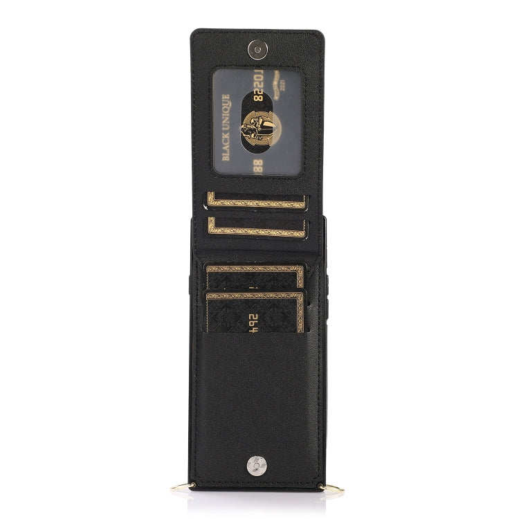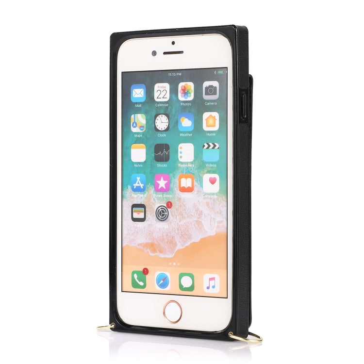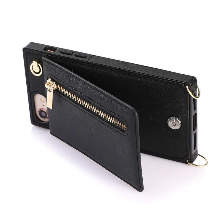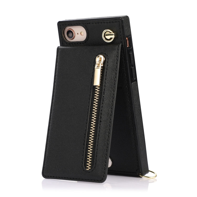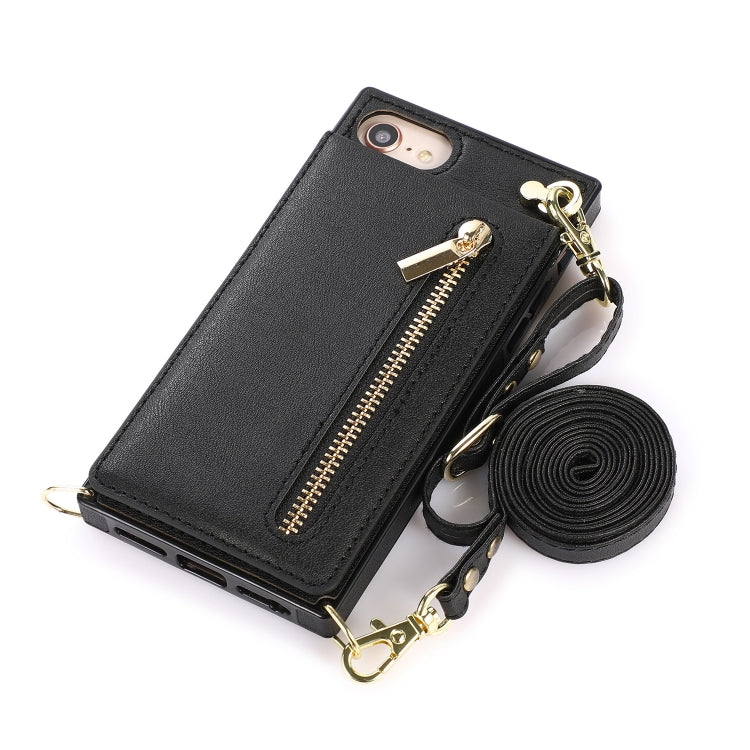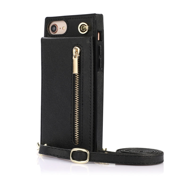 For iPhone SE 2022 / SE 2020 / 8 / 7 Cross-body Zipper Square TPU+PU Back Cover Case with Holder & Card Slots & Wallet & Strap(Black)