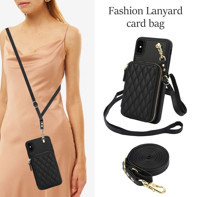 For iPhone X / XS AwQuer Crossbody Zipper Wallet Rhombic Leather Back Phone Case(Black)