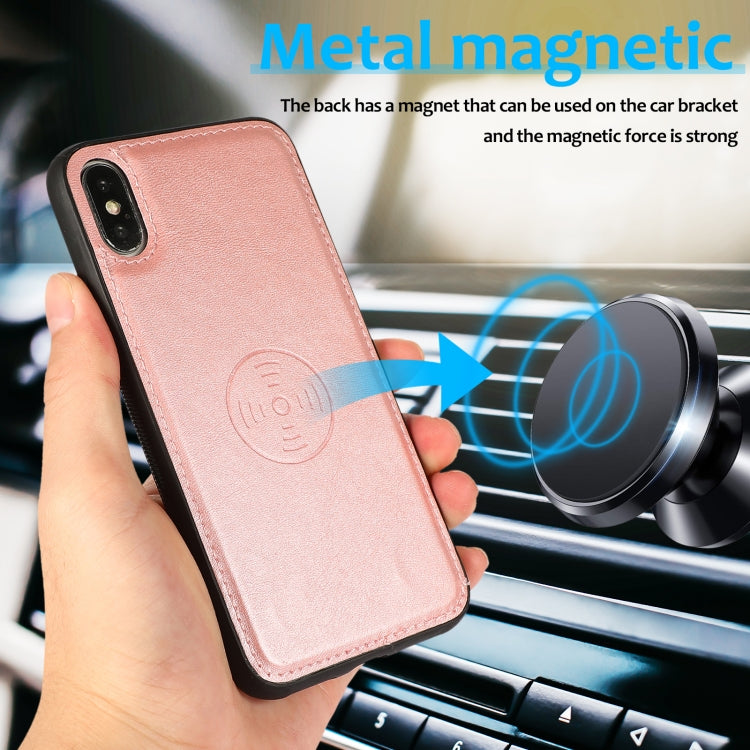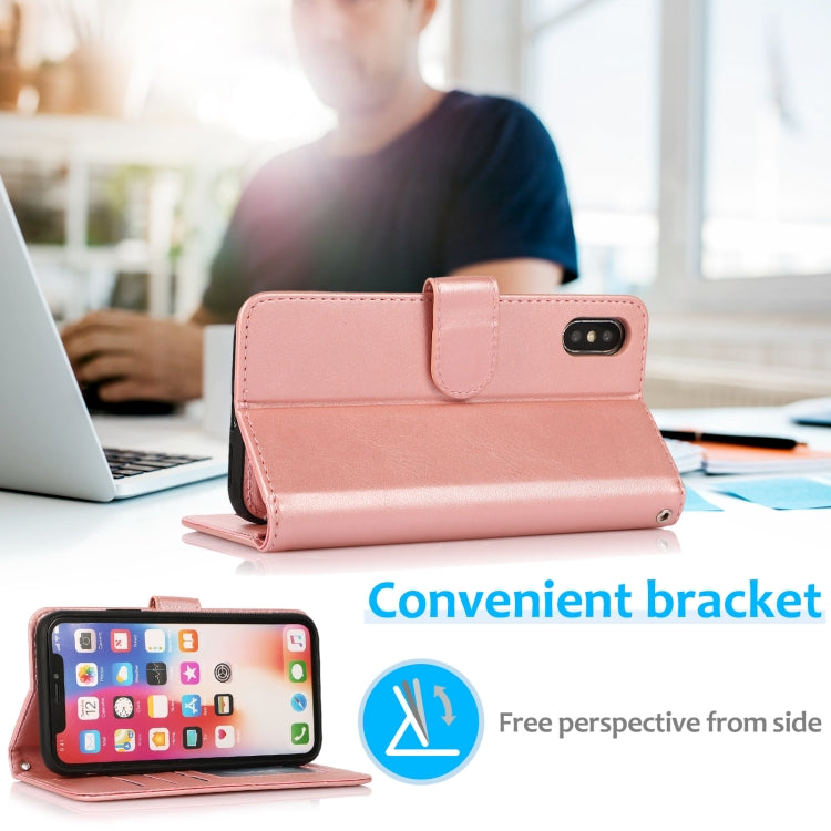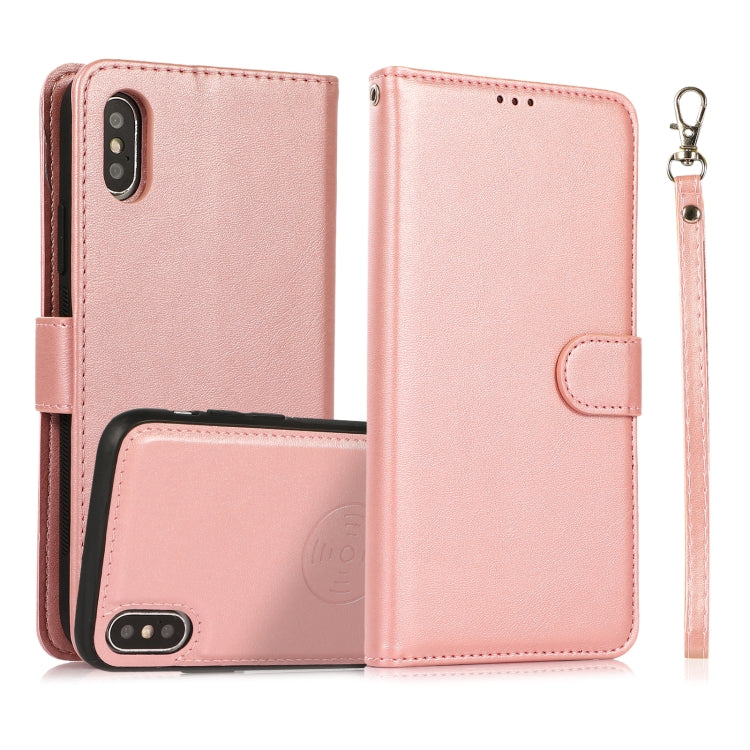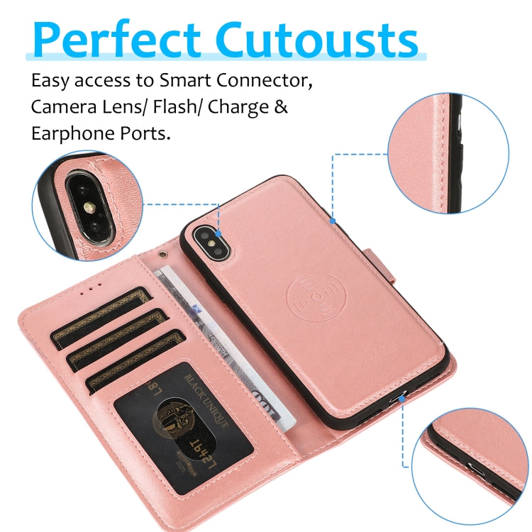 For iPhone X / XS Calf Texture 2 in 1 Detachable Magnetic Back Cover Horizontal Flip Leather Case with Holder & Card Slots & Wallet & Photo Frame(Rose Gold)