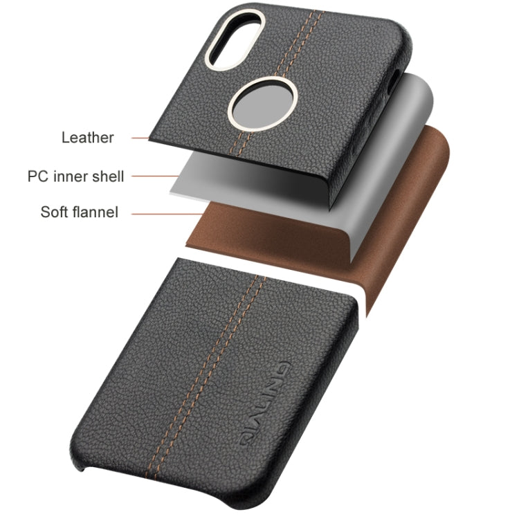 For iPhone X / XS QIALINO Deerskin Texture Cowhide Leather Protective Case(Brown)