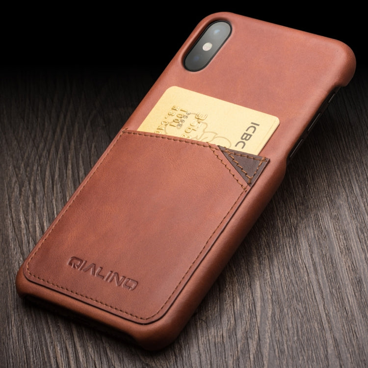 For iPhone X / XS QIALINO Shockproof Cowhide Leather Protective Case with Card Slot(Light Brown)