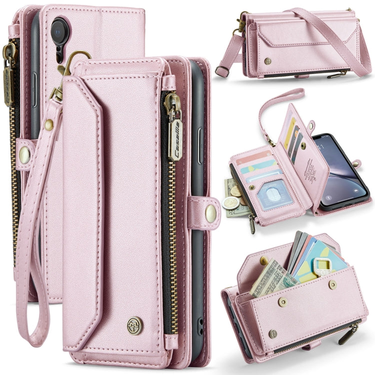 For iPhone XR CaseMe C36 Card Slots Zipper Wallet RFID Anti-theft Leather Phone Case(Pink)