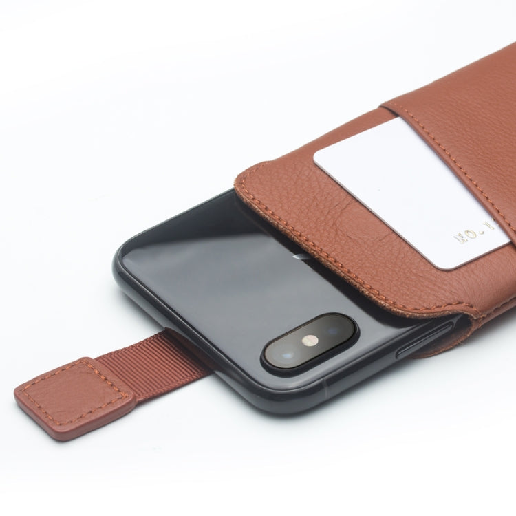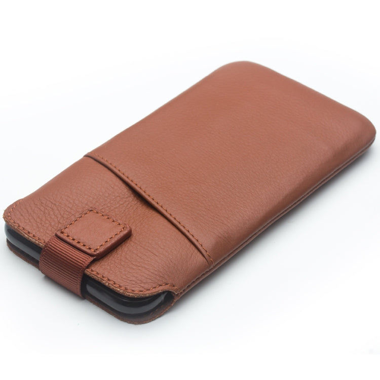 For iPhone XR QIALINO Nappa Texture Top-grain Leather Liner Bag with Card Slots(Brown)
