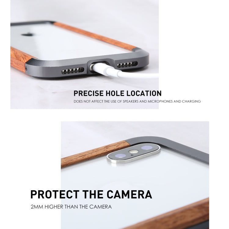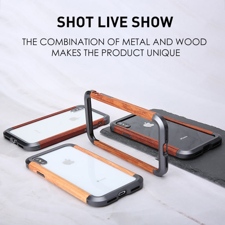 For iPhone XR R-JUST Metal + Wood Frame Protective Case