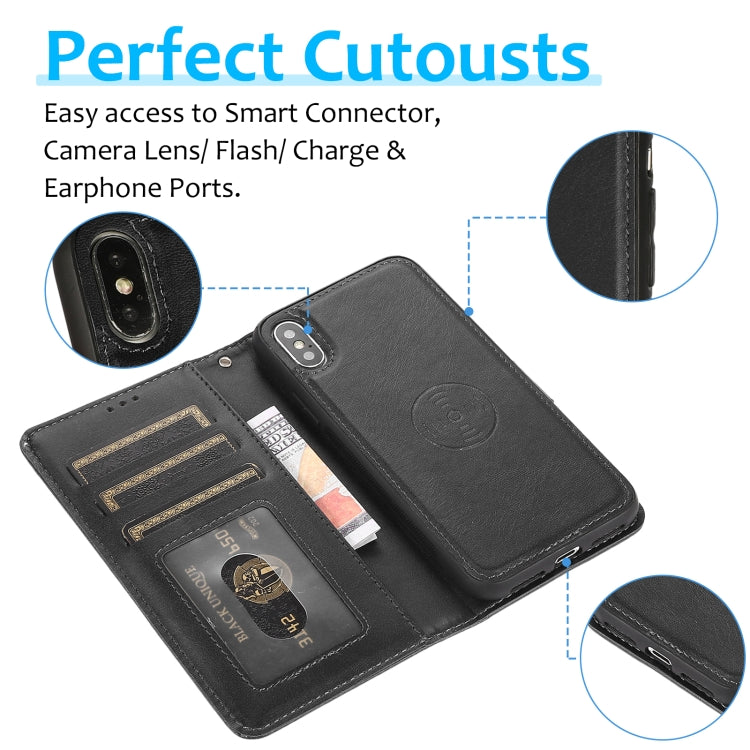 For iPhone XS Max Calf Texture 2 in 1 Detachable Magnetic Back Cover Horizontal Flip Leather Case with Holder & Card Slots & Wallet & Photo Frame(Black)