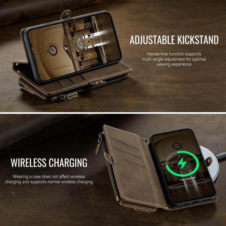 For iPhone XS Max CaseMe C39 RFID Blocking Zipper Wallet Leather Phone Case with Crossbody Strap(Coffee)