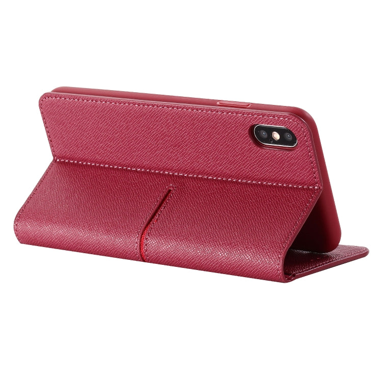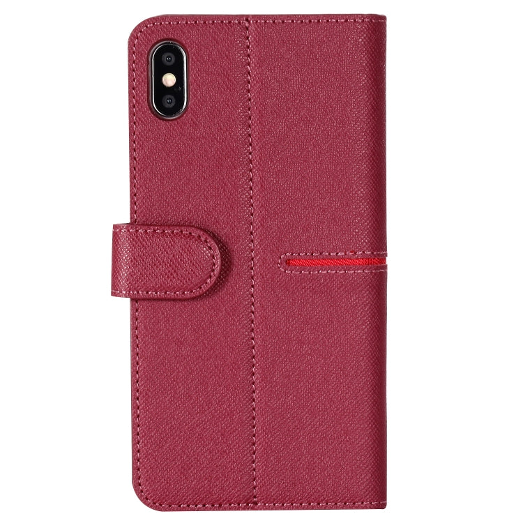 For iPhone XS Max GEBEI Top-grain Leather Horizontal Flip Protective Case with Holder & Card Slots & Wallet & Photo Frame(Red Wine)