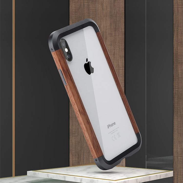 For iPhone XS Max R-JUST Metal + Wood Frame Protective Case