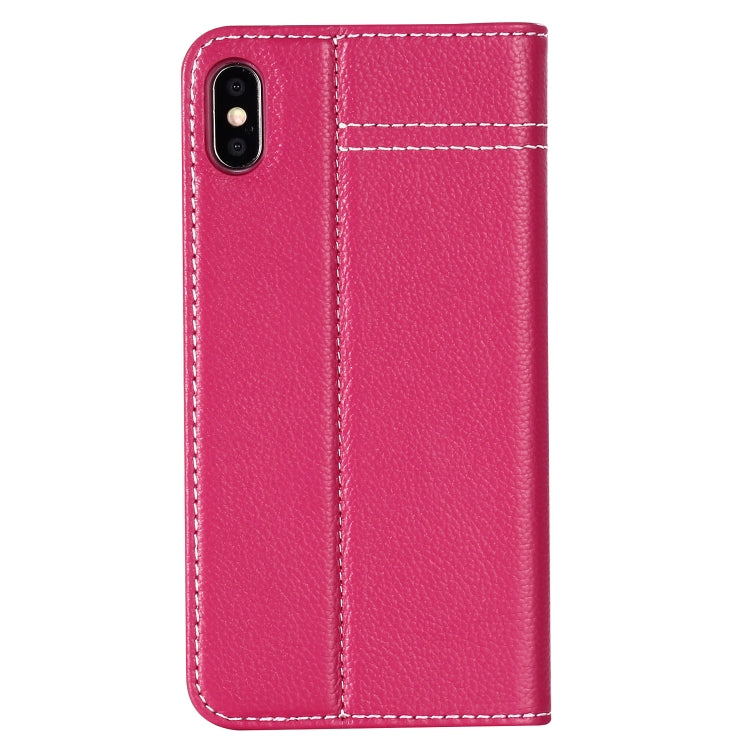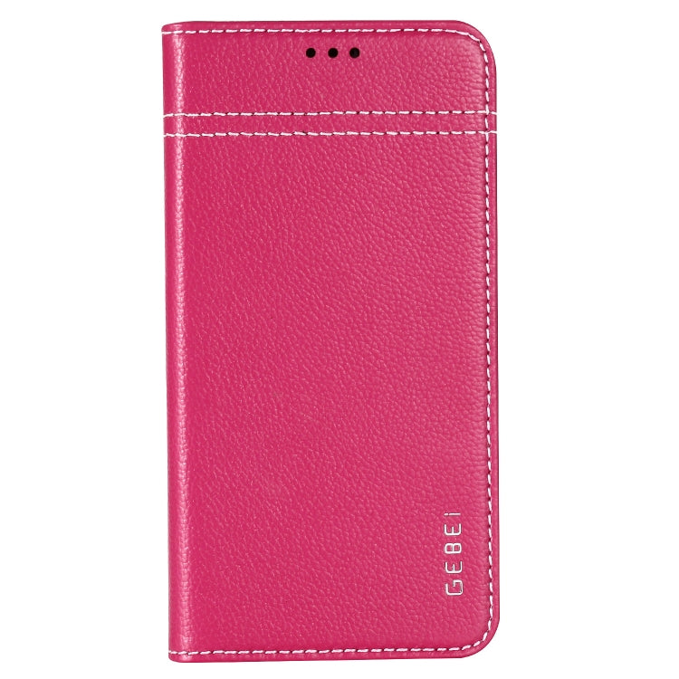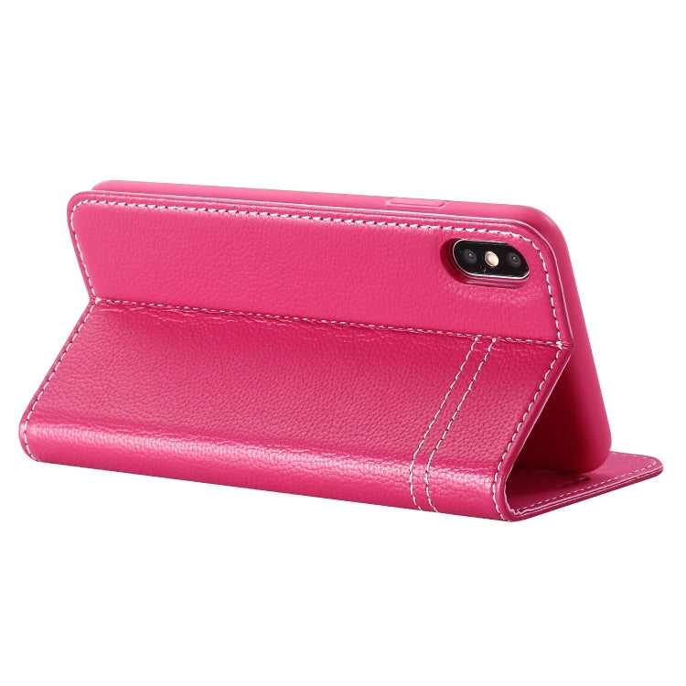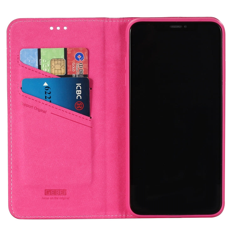 For iPhone XS / X GEBEI Top-grain Leather Horizontal Flip Protective Case with Holder & Card Slots(Rose Red)