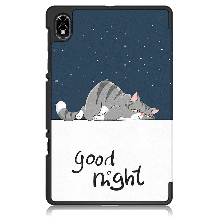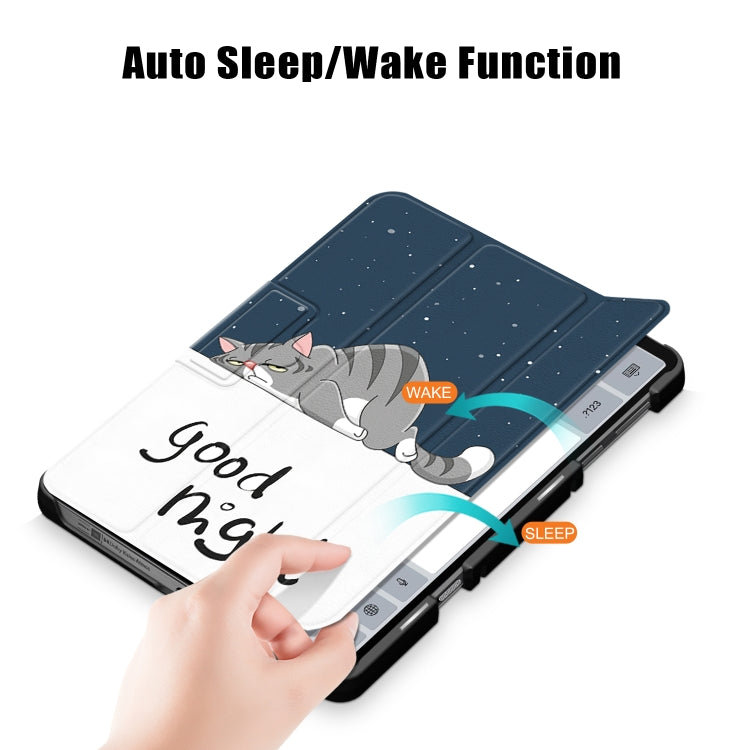 For Lenovo Legion Y700 3-folding Magnetic Buckle Coloured Drawing Leather Smart Tablet Case(Lazy Cat)