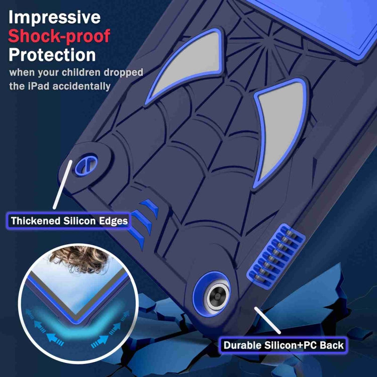 For Lenovo Tab M10 3rd Gen Spider Texture Silicone Hybrid PC Tablet Case with Shoulder Strap(Navy Blue + Blue)