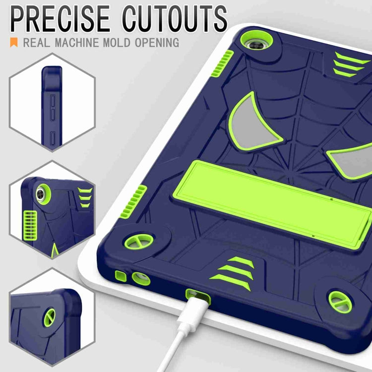 For Lenovo Tab M10 3rd Gen Spider Texture Silicone Hybrid PC Tablet Case with Shoulder Strap(Navy Blue + Yellow Green)