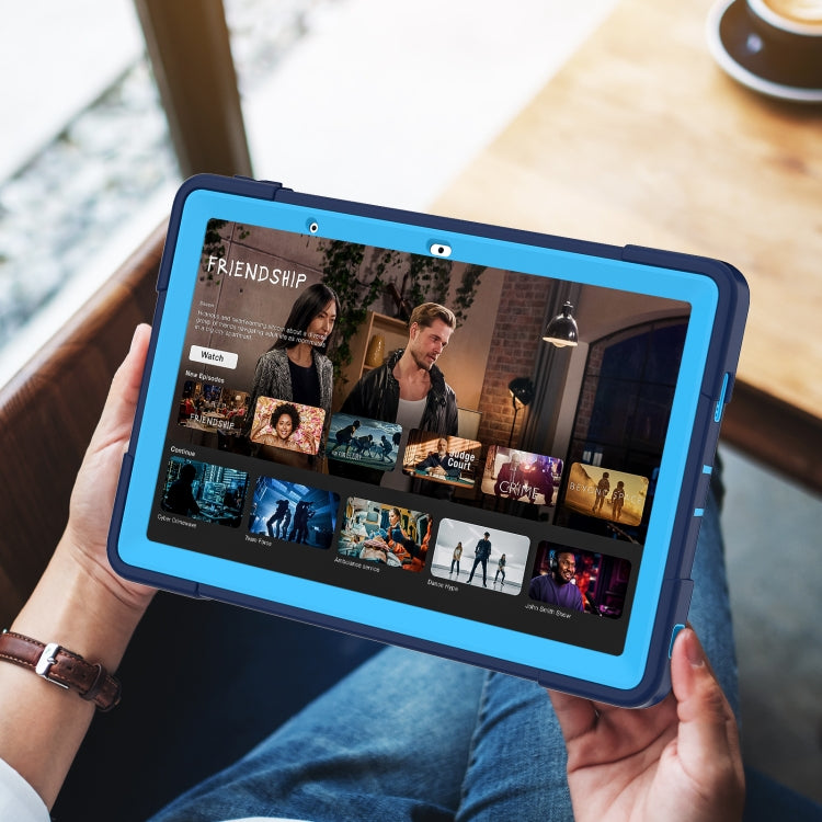 For Lenovo Tab M10 5G 10.6 inch Contrast Color Silicone PC Tablete Case with Holder(Navy Blue + Blue)