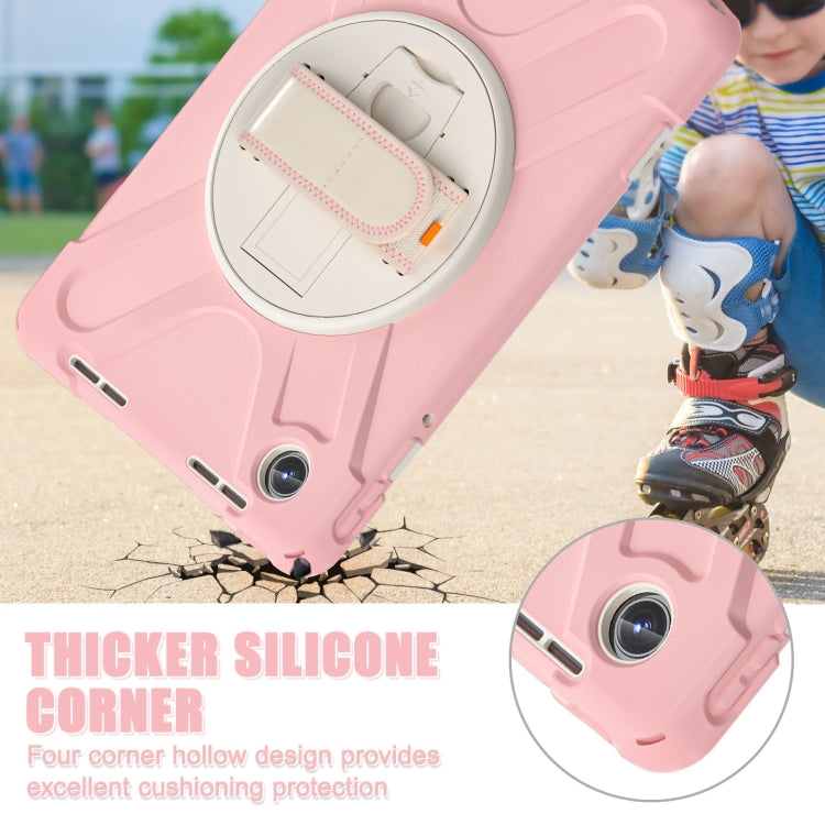 For Lenovo Tab M11 /Xiaoxin Pad 11 2024 Rotatable Holder Silicone Hybrid PC Tablet Case with Shoulder Strap(Pink)