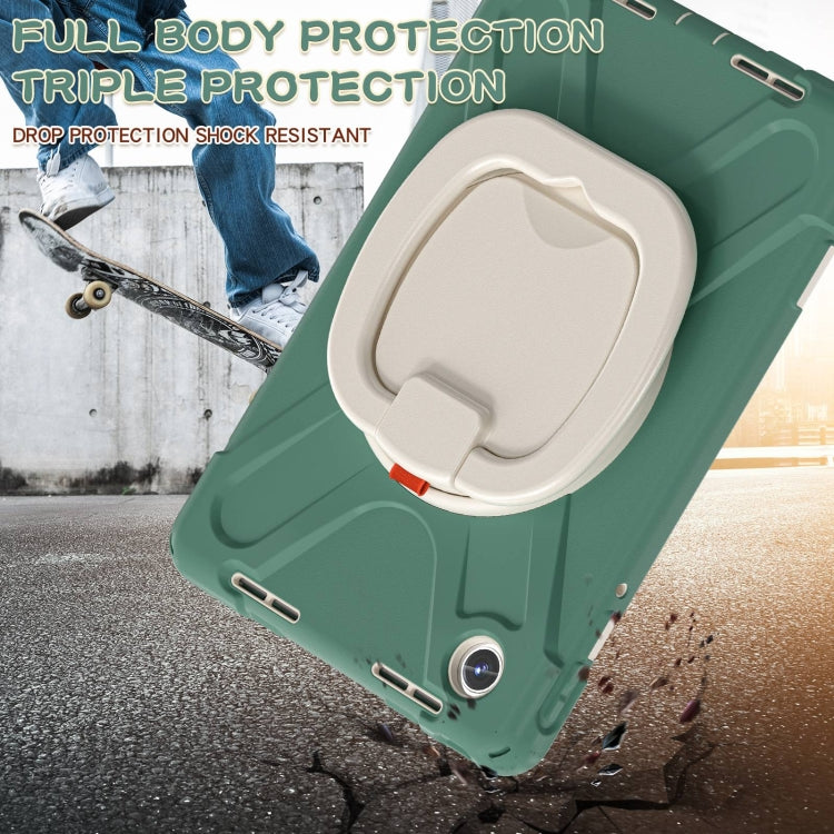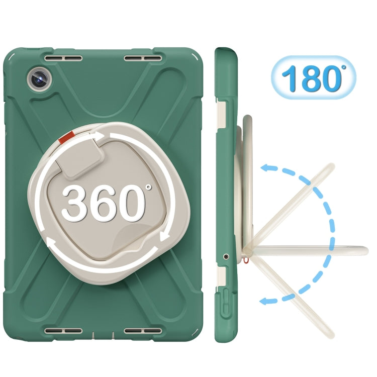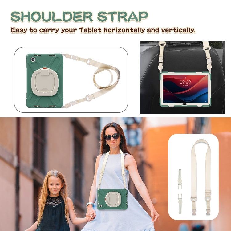For Lenovo Tab M11 /Xiaomi Pad 11 2024 Silicone Hybrid PC Tablet Case with Holder & Shoulder Strap(Emerald Green)