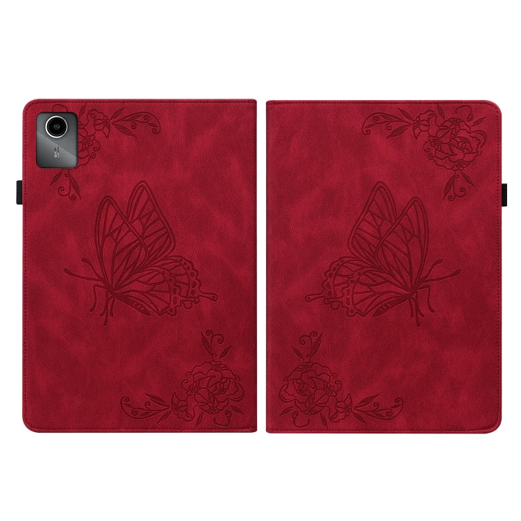 For Lenovo Tab M11/Xiaoxin Pad 11 2024 Butterfly Flower Embossed Leather Tablet Case(Red)
