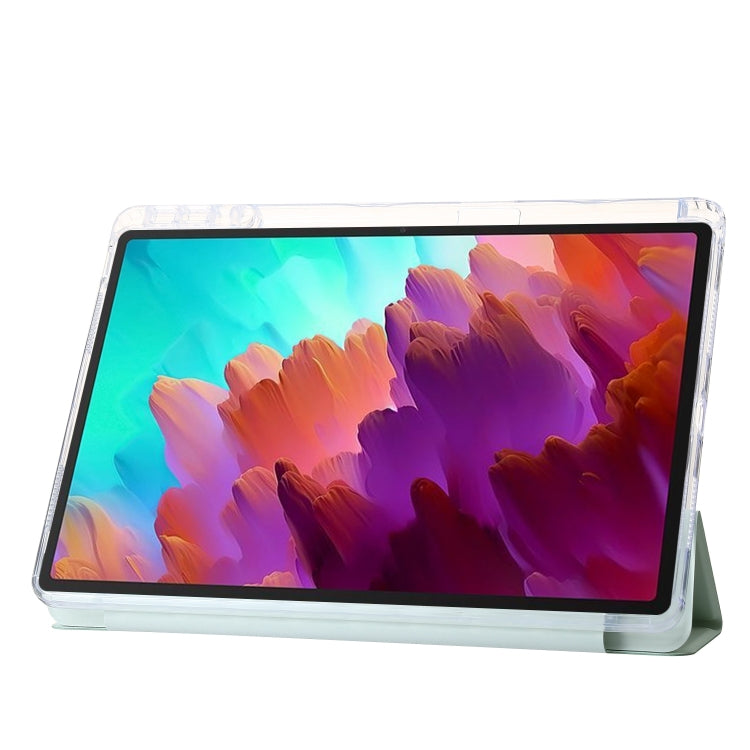 For Lenovo Tab M11 /Xiaoxin Pad 11 2024 Clear Acrylic 3-Fold Leather Tablet Case(Green)