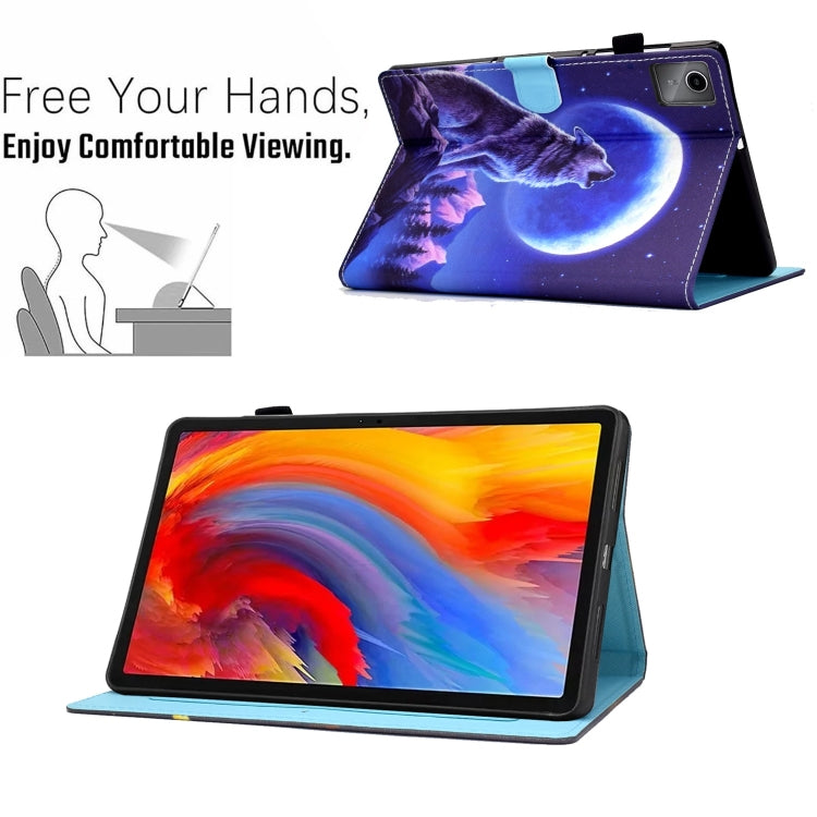 For Lenovo Tab M11 / Xiaoxin Pad 11 2024 Colored Drawing Sewing Pen Slot Leather Tablet Case(Night Wolf)