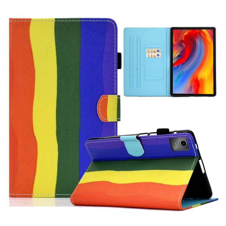 For Lenovo Tab M11 / Xiaoxin Pad 11 2024 Colored Drawing Sewing Pen Slot Leather Tablet Case(Rainbow)