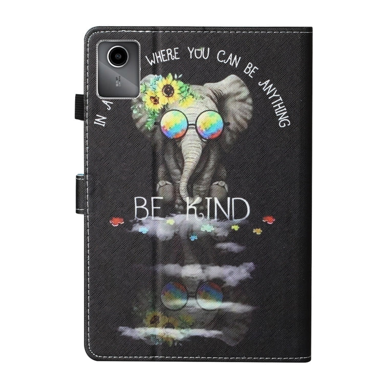 For Lenovo Tab M11/ Xiaoxin Pad 11 2024 Coloured Drawing Stitching Smart Leather Tablet Case(Glasses Elephant)