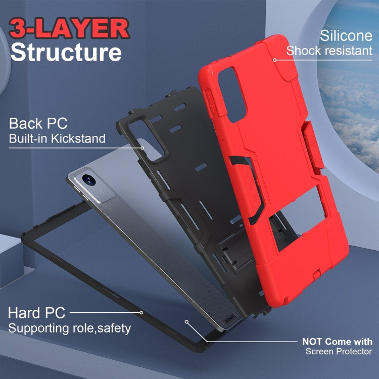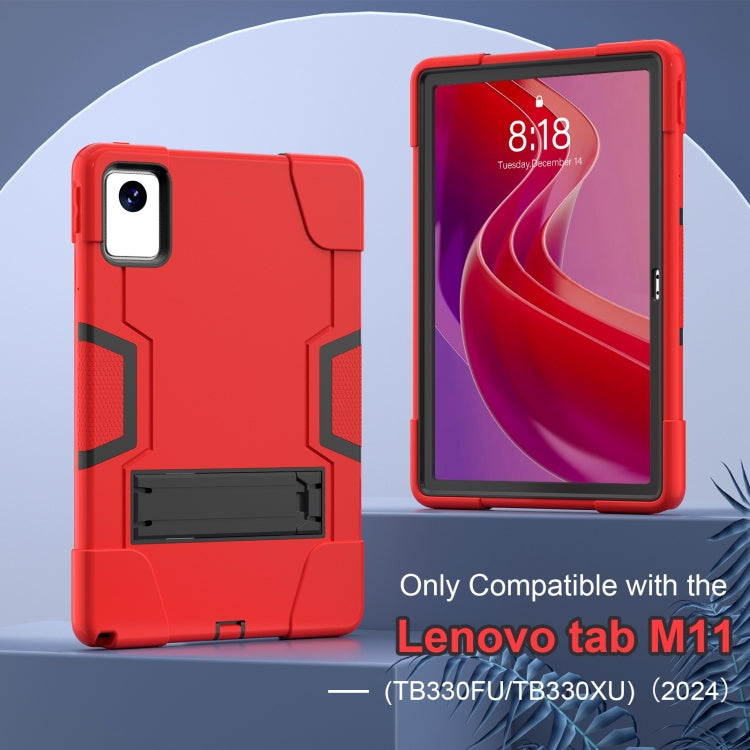 For Lenovo Tab M11/ Xiaoxin Pad 11 2024 Contrast Color Silicone Hybrid PC Tablet Case with Holder(Red Black)