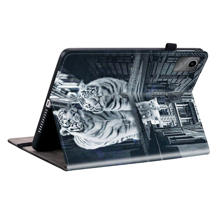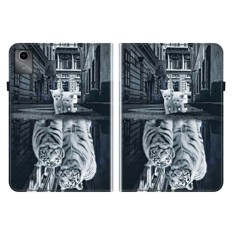 For Lenovo Tab M11/ Xiaoxin Pad 11 2024 Crystal Texture Painted Leather Tablet Case(Cat Reflection Tiger)