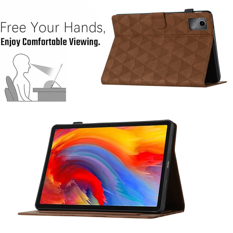 For Lenovo Tab M11/Xiaoxin Pad 11 2024 Diamond Texture Embossed Leather Smart Tablet Case(Brown)