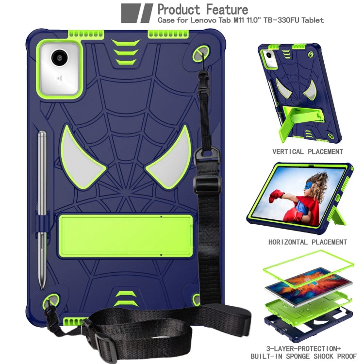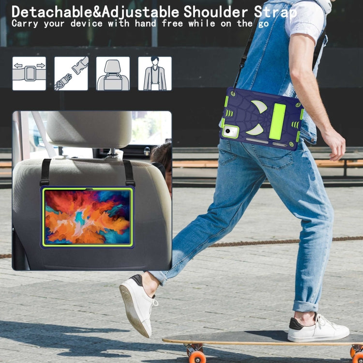 For Lenovo Tab M11/ Xiaoxin Pad 11 2024 Fold-Holder Spider Silicone Hybrid PC Tablet Case(Navy Yellow Green)