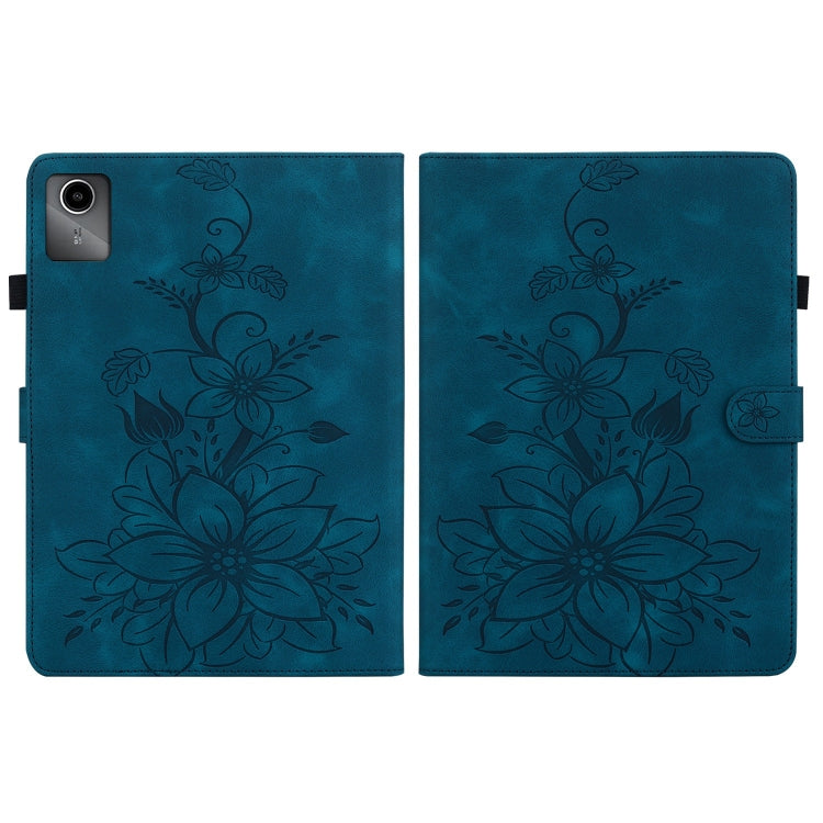 For Lenovo Tab M11/Xiaoxin Pad 11 2024 Lily Embossed Leather Tablet Case(Dark Blue)