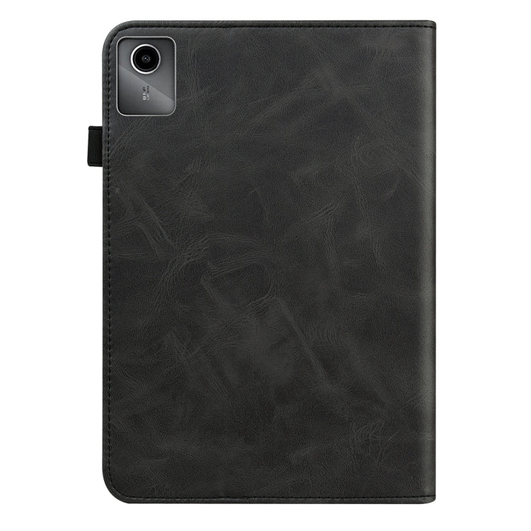 For Lenovo Tab M11 / Xiaoxin Pad 11 2024 Solid Color Stripe Embossed Leather Tablet Case(Black)