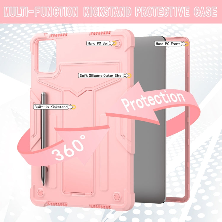 For Lenovo Tab M11/ Xiaoxin Pad 11 2024 T Holder Robot Silicone Hybrid PC Tablet Case(Rose Gold)