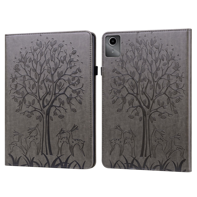For Lenovo Tab M11 / Xiaoxin Pad 11 2024 Tree & Deer Embossed Leather Tablet Case(Grey)