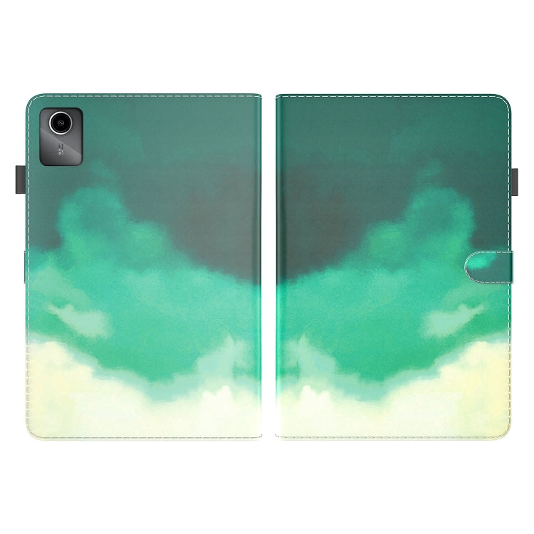 For Lenovo Tab M11 / Xiaoxin Pad 11 2024 Watercolor Pattern Flip Leather Tablet Case(Cyan Green)