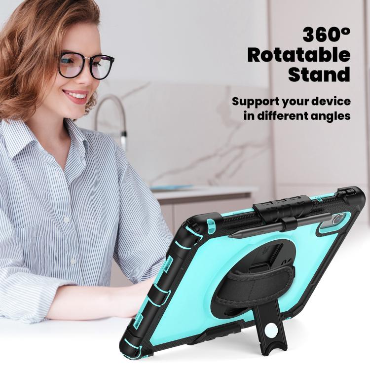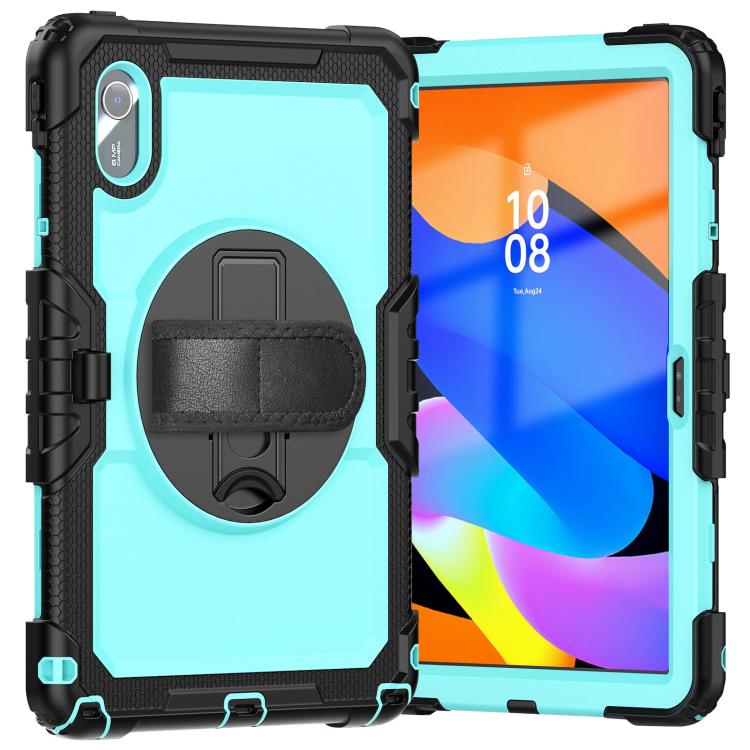 For Lenovo Xiaoxin Pad 2024 / 2025 Silicone Hybrid PC Tablet Case with Shoulder Strap(Black Light Blue PC)