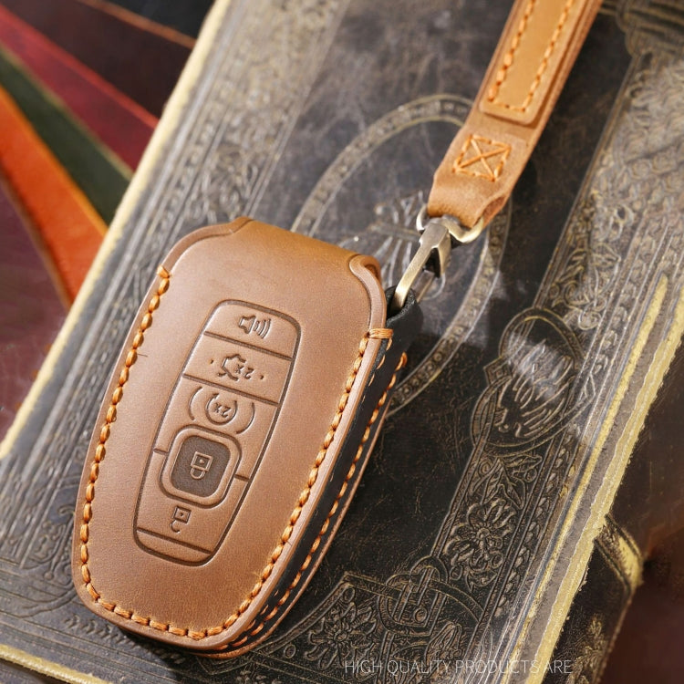 For Lincoln Hallmo Car Cowhide Leather Key Protective Cover Key Case(Black)