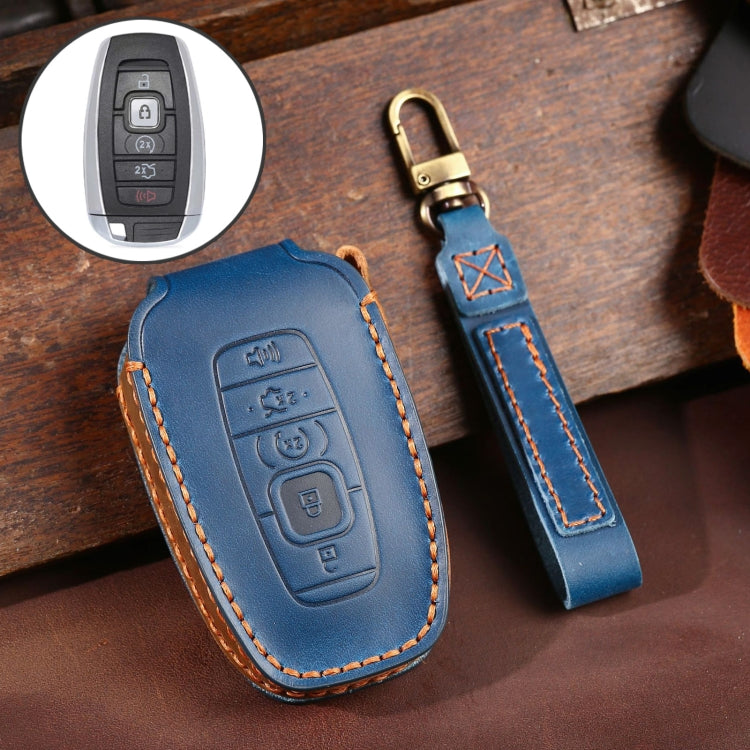 For Lincoln Hallmo Car Cowhide Leather Key Protective Cover Key Case(Blue)
