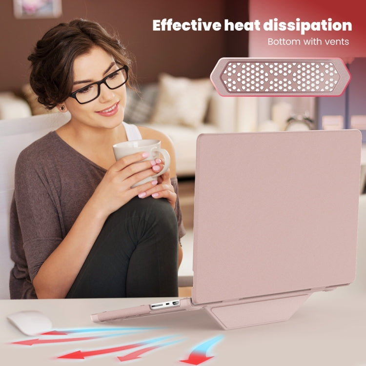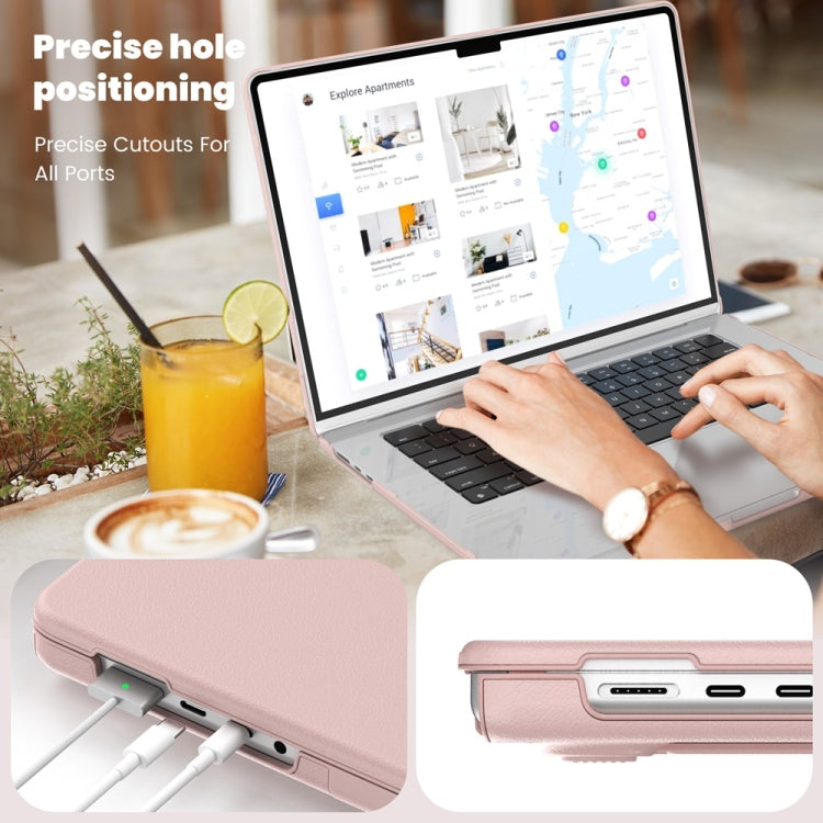 For MacBook Pro 16.2 inch A2991 / A2485 Business Magnetic Holder PC + PU Laptop Protective Case(Pink)