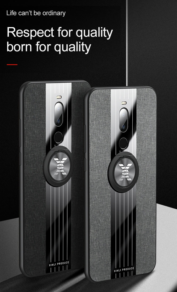 For Meizu Note 8 XINLI Stitching Cloth Texture Shockproof TPU Protective Case with Ring Holder(Brown)