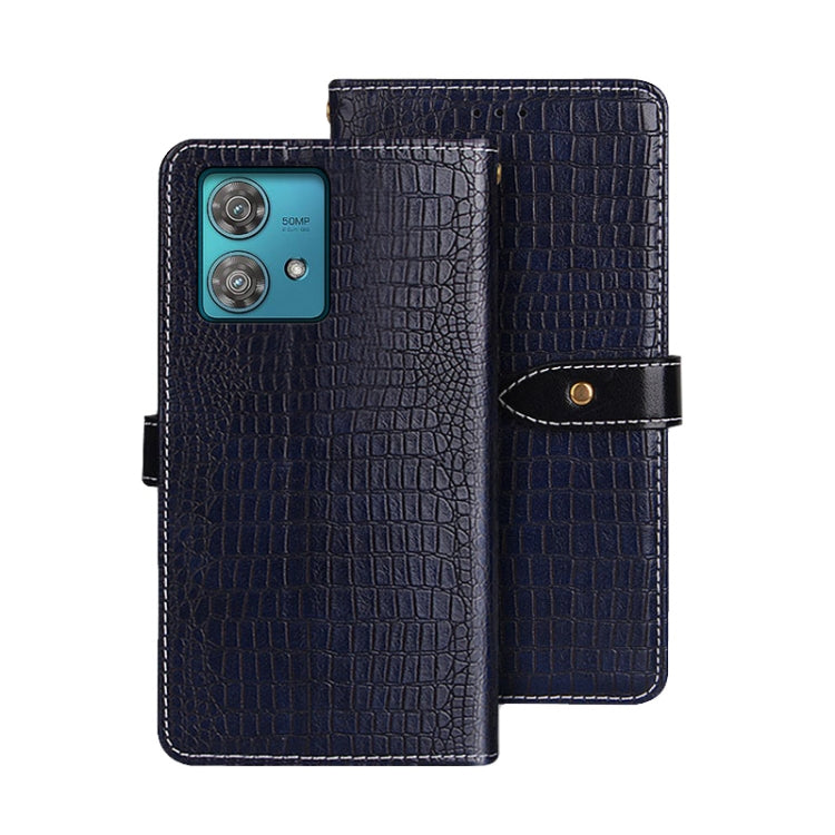 For Motorola Edge 40 Neo idewei Crocodile Texture Leather Phone Case(Dark Blue)