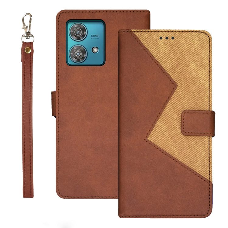 For Motorola Edge 40 Neo idewei Two-color Splicing Leather Phone Case(Brown)