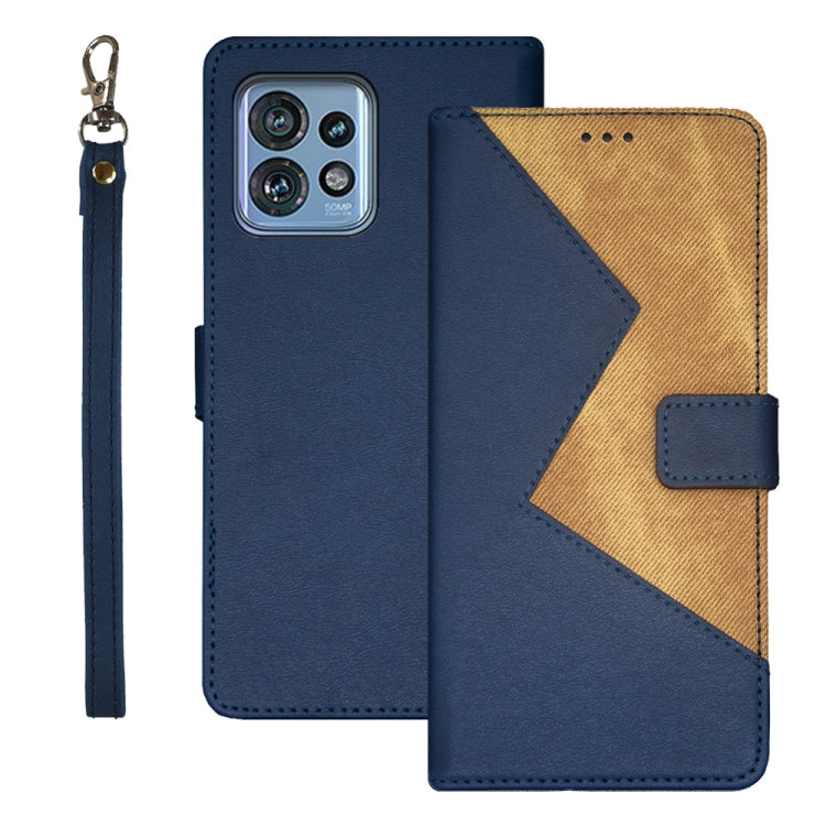 For Motorola Edge 40 Pro 5G idewei Two-color Splicing Leather Phone Case(Blue)