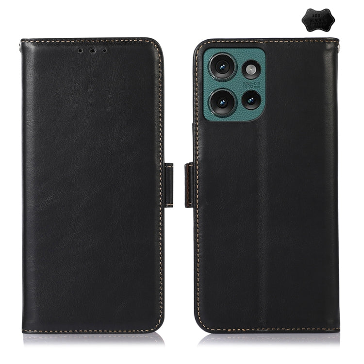 For Motorola Edge 50 Global Magnetic Crazy Horse Texture Genuine Leather Phone Case(Black)