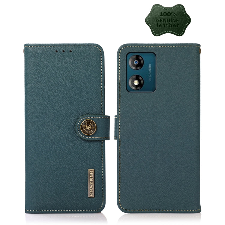 For Motorola Moto E13 2023 4G KHAZNEH Custer Texture RFID Genuine Leather Phone Case(Green)
